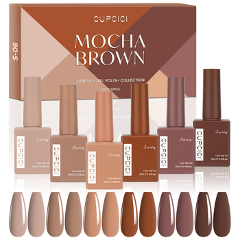 مجموعة طلاء الأظافر الجل BIN Mocha Brown المخصصة، 6 قطع سعة 10 مل، نفس اللون نفس الزجاجة، طقم طلاء الأظافر بالأشعة فوق البنفسجية لفن الأظافر والمانيكير