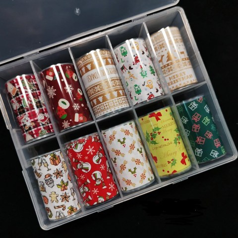 แผ่นฟอยล์ลอกลายเล็บสีสันสดใสสไตล์คริสมาสต์ถังขยะ10ม้วน/กล่อง