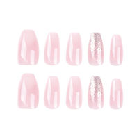 24 piezas de alta calidad, cobertura completa en forma de almendra corta, brillo rosa, uñas postizas francesas, pegamento suave, juego de uñas postizas a presión